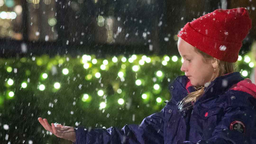 Join us this holiday season in downtown Pensacola for Winterfest, where snow flurries fill the air at the corner of Government and Palafox streets.