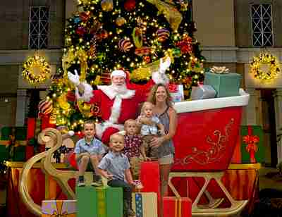 Gather with Santa Our Santa photo set helps the whole family to get together for a photo while your kids and Santa talk!