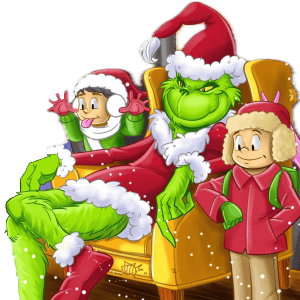 You will be led to the Grinch’s throne, located behind Santa’s sleigh. While he LOATHES visitors, the Grinch will reluctantly allow you to intrude upon his solitude and sit on top of a few trashcan seats for a photo.